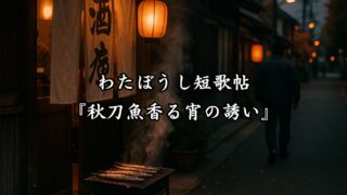 わたぼうし短歌帖 わたぼうし短歌帖『秋刀魚香る宵の誘い』 わたぼうし短歌帖『秋刀魚香る宵の誘い』。夜の静けさに寄り添いながら、季節の記憶と心の風景を五行のうたに綴っています。 2025.09.20 わたぼうし短歌帖