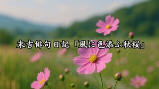 末吉俳句日記 末吉俳句日記『風に色添ふ秋桜』 末吉俳句日記『風に色添ふ秋桜』の情景を言葉にのせてお届けします。季節のひとときを、静かな一句にそっと託して綴っています。 2025.09.14 末吉俳句日記