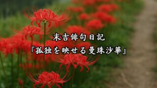 末吉俳句日記 末吉俳句日記『孤独を映せる曼珠沙華』 末吉俳句日記『孤独を映せる曼珠沙華』の情景を言葉にのせてお届けします。季節のひとときを、静かな一句にそっと託して綴っています。 2025.09.15 末吉俳句日記