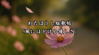 わたぼうし短歌帖 わたぼうし短歌帖『風にほどける優しさ』 わたぼうし短歌帖『風にほどける優しさ』。夜の静けさに寄り添いながら、季節の記憶と心の風景を五行のうたに綴っています。 2025.09.14 わたぼうし短歌帖