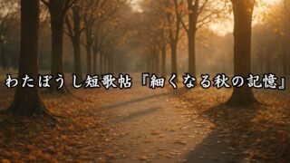 わたぼうし短歌帖 わたぼうし短歌帖『細くなる秋の記憶』 わたぼうし短歌帖『細くなる秋の記憶』。夜の静けさに寄り添いながら、季節の記憶と心の風景を五行のうたに綴っています。 2025.10.15 わたぼうし短歌帖