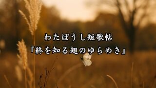 わたぼうし短歌帖 わたぼうし短歌帖『終を知る翅のゆらめき』 わたぼうし短歌帖『終を知る翅のゆらめき』。夜の静けさに寄り添いながら、季節の記憶と心の風景を五行のうたに綴っています。 2025.10.16 わたぼうし短歌帖