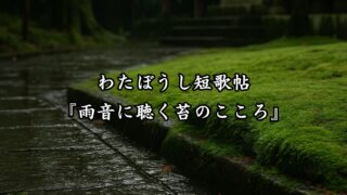 わたぼうし短歌帖 わたぼうし短歌帖『雨音に聴く苔のこころ』 わたぼうし短歌帖『雨音に聴く苔のこころ』。夜の静けさに寄り添いながら、季節の記憶と心の風景を五行のうたに綴っています。 2025.10.18 わたぼうし短歌帖