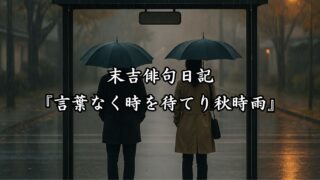 末吉俳句日記 末吉俳句日記『言葉なく時を待てり秋時雨』 末吉俳句日記『言葉なく時を待てり秋時雨』の情景を言葉にのせてお届けします。季節のひとときを、静かな一句にそっと託して綴っています。 2025.10.22 末吉俳句日記