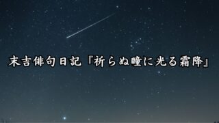 末吉俳句日記 末吉俳句日記『祈らぬ瞳に光る霜降』 末吉俳句日記『祈らぬ瞳に光る霜降』の情景を言葉にのせてお届けします。季節のひとときを、静かな一句にそっと託して綴っています。 2025.10.23 末吉俳句日記
