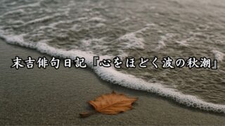末吉俳句日記 末吉俳句日記『心をほどく波の秋潮』 末吉俳句日記『心をほどく波の秋潮』の情景を言葉にのせてお届けします。季節のひとときを、静かな一句にそっと託して綴っています。 2025.10.26 末吉俳句日記