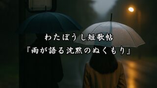 わたぼうし短歌帖 わたぼうし短歌帖『雨が語る沈黙のぬくもり』 わたぼうし短歌帖『雨が語る沈黙のぬくもり』。夜の静けさに寄り添いながら、季節の記憶と心の風景を五行のうたに綴っています。 2025.10.22 わたぼうし短歌帖