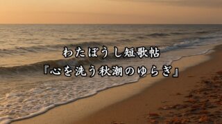 わたぼうし短歌帖 わたぼうし短歌帖『心を洗う秋潮のゆらぎ』 わたぼうし短歌帖『心を洗う秋潮のゆらぎ』。夜の静けさに寄り添いながら、季節の記憶と心の風景を五行のうたに綴っています。 2025.10.26 わたぼうし短歌帖