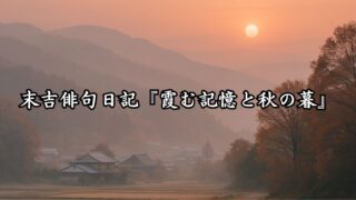 末吉俳句日記 末吉俳句日記『霞む記憶と秋の暮』 末吉俳句日記『霞む記憶と秋の暮』の情景を言葉にのせてお届けします。季節のひとときを、静かな一句にそっと託して綴っています。 2025.11.03 末吉俳句日記