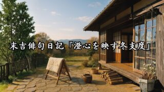 末吉俳句日記 末吉俳句日記『澄心を映す冬支度』 末吉俳句日記『澄心を映す冬支度』の情景を言葉にのせてお届けします。季節のひとときを、静かな一句にそっと託して綴っています。 2025.11.06 末吉俳句日記
