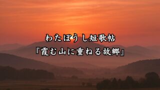 わたぼうし短歌帖 わたぼうし短歌帖『霞む山に重ねる故郷』 わたぼうし短歌帖『霞む山に重ねる故郷』。夜の静けさに寄り添いながら、季節の記憶と心の風景を五行のうたに綴っています。 2025.11.03 わたぼうし短歌帖