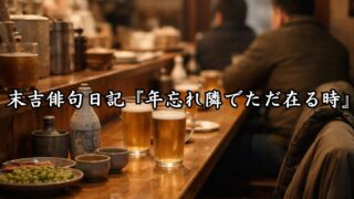 末吉俳句日記 末吉俳句日記『年忘れ隣でただ在る時』 末吉俳句日記『年忘れ隣でただ在る時』の情景を言葉にのせてお届けします。季節のひとときを、静かな一句にそっと託して綴っています。 2025.12.27 末吉俳句日記末吉俳句日記十二月の句
