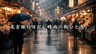 末吉俳句日記 末吉俳句日記『時雨の街ひと息』 末吉俳句日記『時雨の街ひと息』の情景を言葉にのせてお届けします。季節のひとときを、静かな一句にそっと託して綴っています。 2025.12.29 末吉俳句日記末吉俳句日記十二月の句