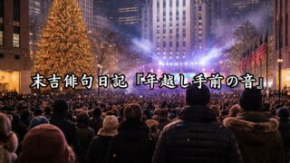 末吉俳句日記 末吉俳句日記『年越し手前の音』 末吉俳句日記『年越し手前の音』の情景を言葉にのせてお届けします。季節のひとときを、静かな一句にそっと託して綴っています。 2025.12.31 末吉俳句日記末吉俳句日記十二月の句