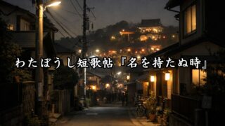 わたぼうし短歌帖 わたぼうし短歌帖『歩幅を戻す街』 わたぼうし短歌帖『歩幅を戻す街』。夜の静けさに寄り添いながら、季節の記憶と心の風景を五行のうたに綴っています。 2025.12.29 わたぼうし短歌帖
