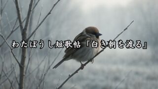わたぼうし短歌帖 わたぼうし短歌帖『白き朝を渡る』 わたぼうし短歌帖『白き朝を渡る』。夜の静けさに寄り添いながら、季節の記憶と心の風景を五行のうたに綴っています。 2025.12.15 わたぼうし短歌帖