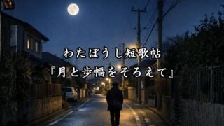 わたぼうし短歌帖 わたぼうし短歌帖『月と歩幅をそろえて』 わたぼうし短歌帖『月と歩幅をそろえて』。夜の静けさに寄り添いながら、季節の記憶と心の風景を五行のうたに綴っています。 2026.01.05 わたぼうし短歌帖