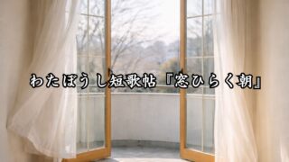 わたぼうし短歌帖『窓ひらく朝』。夜の静けさに寄り添いながら、季節の記憶と心の風景を五行のうたに綴っています。