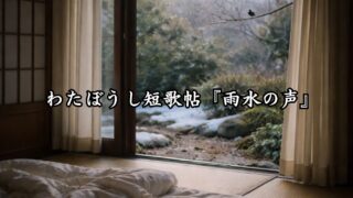 わたぼうし短歌帖『雨水の声』。夜の静けさに寄り添いながら、季節の記憶と心の風景を五行のうたに綴っています。