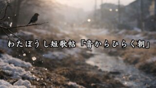 わたぼうし短歌帖『音からひらく朝』。夜の静けさに寄り添いながら、季節の記憶と心の風景を五行のうたに綴っています。