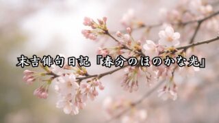 末吉俳句日記 末吉俳句日記『春分のほのかな光』 末吉俳句日記『春分のほのかな光』の情景を言葉にのせてお届けします。季節のひとときを、静かな一句にそっと託して綴っています。 2026.03.21 末吉俳句日記末吉俳句日記十二月の句
