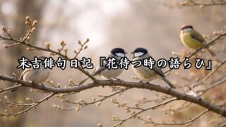 末吉俳句日記 末吉俳句日記『花待つ時の語らひ』 末吉俳句日記『花待つ時の語らひ』の情景を言葉にのせてお届けします。季節のひとときを、静かな一句にそっと託して綴っています。 2026.03.23 末吉俳句日記末吉俳句日記十二月の句