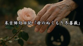末吉俳句日記 末吉俳句日記『母のぬくもり冬薔薇』 末吉俳句日記『母のぬくもり冬薔薇』の情景を言葉にのせてお届けします。季節のひとときを、静かな一句にそっと託して綴っています。 2025.11.14 末吉俳句日記