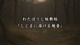 わたぼうし短歌帖 わたぼうし短歌帖『しじまに溶ける翅音』 わたぼうし短歌帖『しじまに溶ける翅音』。夜の静けさに寄り添いながら、季節の記憶と心の風景を五行のうたに綴っています。 2025.12.08 わたぼうし短歌帖
