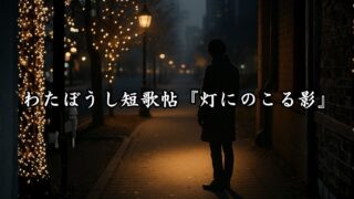 わたぼうし短歌帖 わたぼうし短歌帖『灯にのこる影』 わたぼうし短歌帖『灯にのこる影』。夜の静けさに寄り添いながら、季節の記憶と心の風景を五行のうたに綴っています。 2025.11.21 わたぼうし短歌帖
