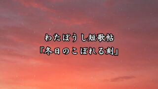 わたぼうし短歌帖 わたぼうし短歌帖『冬日のこぼれる刻』 わたぼうし短歌帖『冬日のこぼれる刻』。夜の静けさに寄り添いながら、季節の記憶と心の風景を五行のうたに綴っています。 2025.11.22 わたぼうし短歌帖